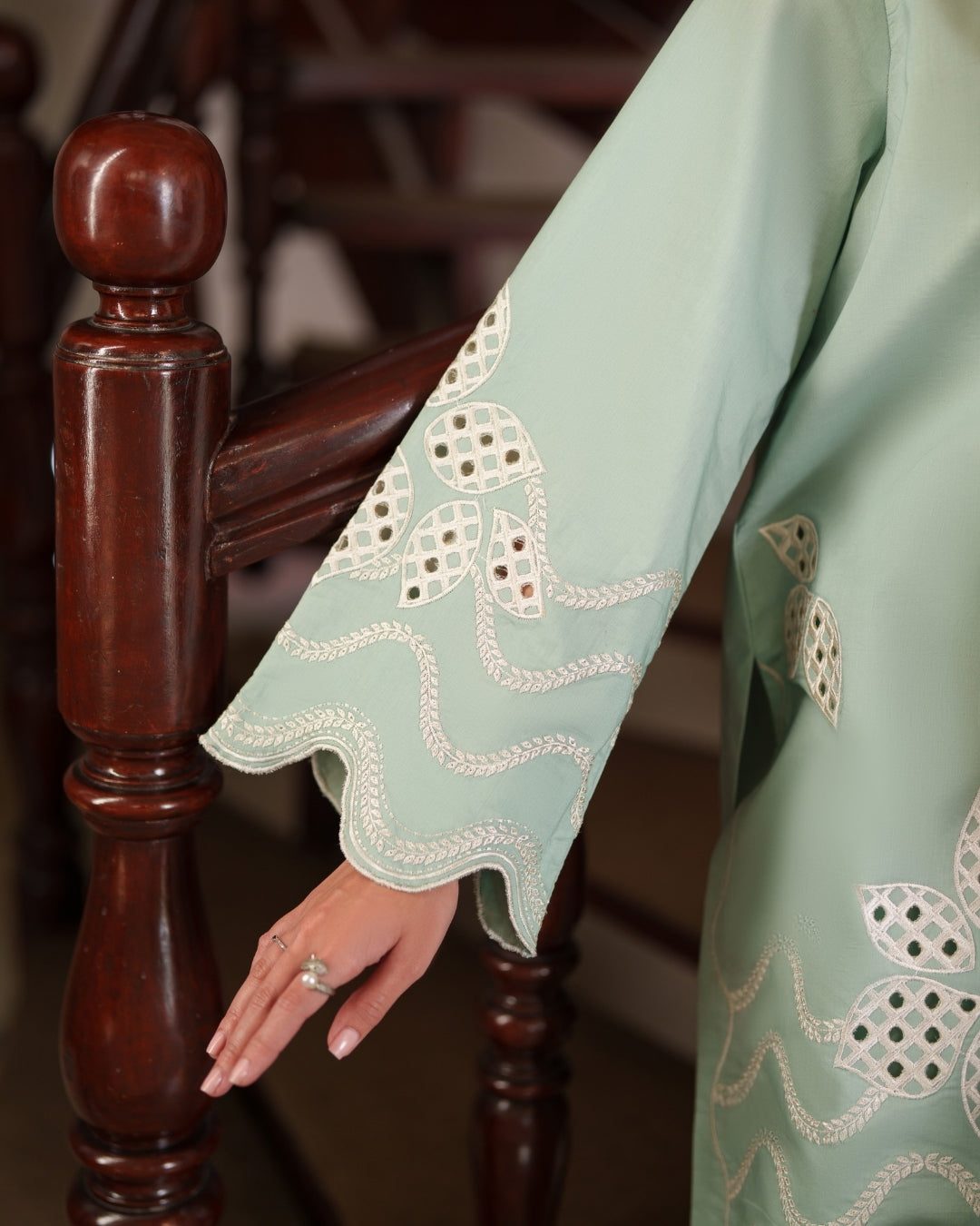 All laces and embellishments shown in the shoot articles will be included in stitched orders.