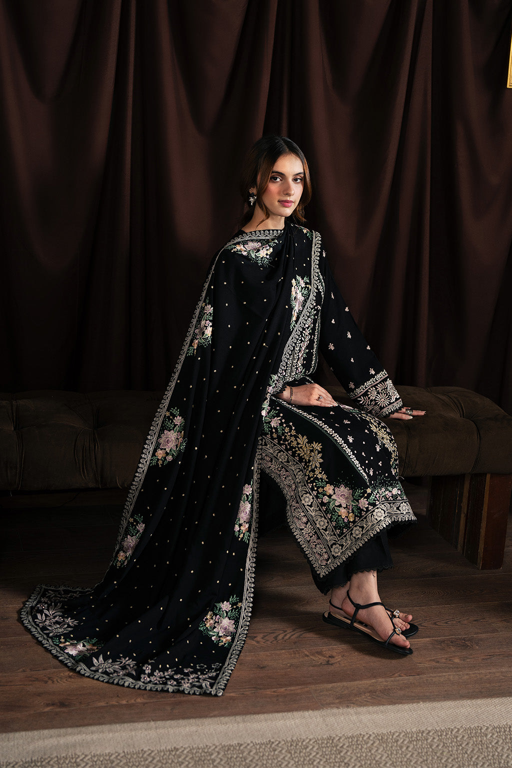• EMBROIDERED KARANDI SHAWL PALLU. (2-PIECES)